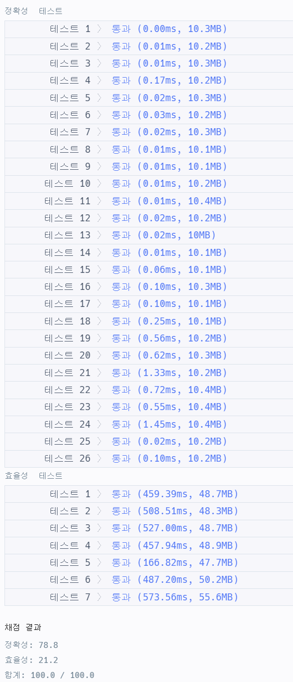 정확성은 맞으나 효율성 0점 짜리 ㅠㅜ